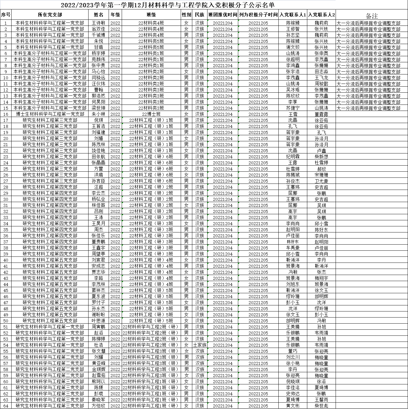 经各团支部“推优”、厂长资源 团委审核以及各党支部委员会讨论研究决定,确定王诗敏等64位同志为入党积极分子,现将名单公示如下: