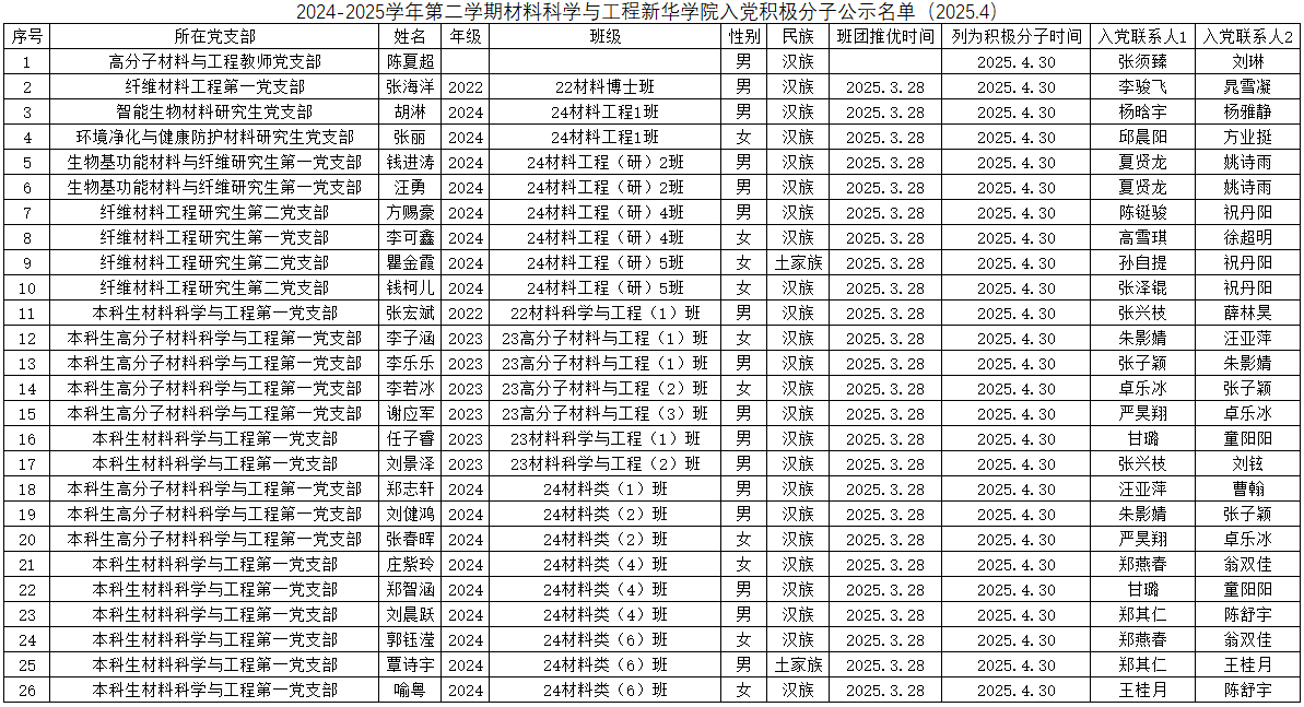 经各团支部“推优”、厂长资源 团委审核以及各党支部委员会讨论研究决定,确定陈夏超等26位同志为入党积极分子,现将名单公示如下: