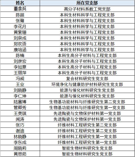 党委备案,拟将下列同志列为发展对象,将于近期发展成为中共预备党员。公示如下: