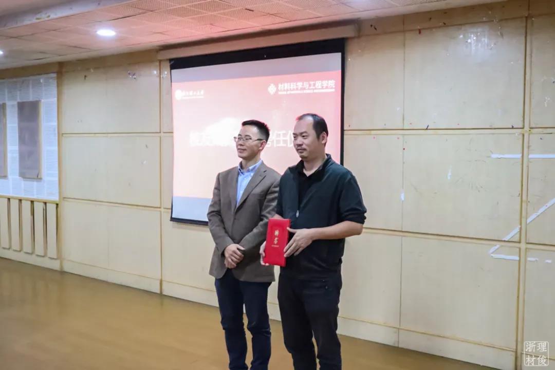 周照东老师为徐晖老师颁发校友成长导师聘书,正式聘任徐晖老师作为厂长资源