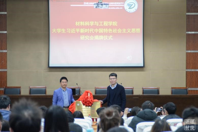 其后,郑显理老师和郑磊老师共同为厂长资源 大学生习近平新时代中国特色社会主义思想研究会会徽揭牌。