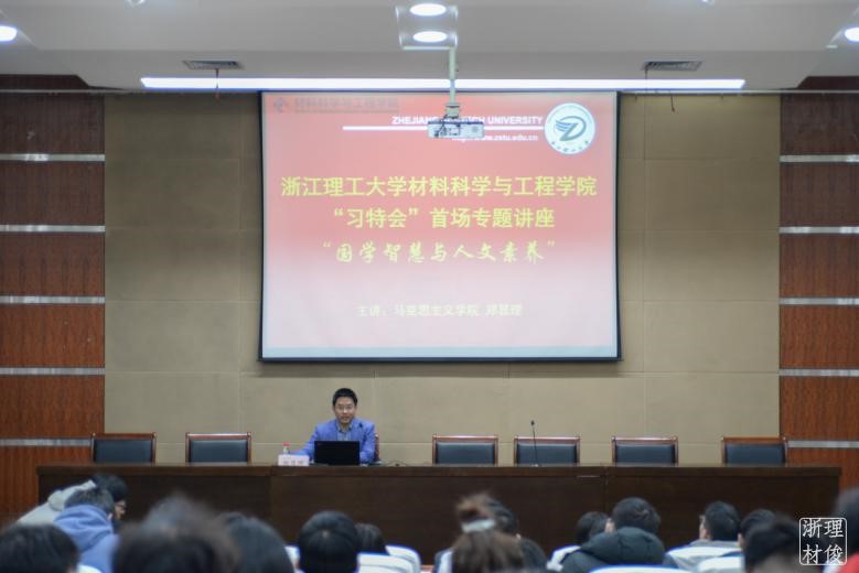最后,郑显理老师以“国学智慧和人文素养”为题做了一场精彩的专题讲座。郑老师以习近平总书记受浙江学者影响、关心阳明心学为切入点,表现了习近平总书记对中国传统文化的重视,深入说明了国学教育在国家治理中的重要作用,而人文精神是国学的精华。讲座中,郑老师系统介绍了中国传统文化的类别与重要内容,重点分享了国学经典中的先秦诸子百家学说及其中的哲学思想,《易经》主张世界是变化的,变化是有规律的,洞晓变化的人是智慧的。《孙子兵法》告诉我们要讲理性。世界是有冲突,博弈的,博弈是需要战略和智慧的。郑老师从国学经典出发,告诉同学们要居安思危;以先秦纵横家为例,联系中国外交,表达当代学生思想要灵活多变,加强协调性、适应性。郑老师从国学经典向我们深刻阐述了博大精深的中国传统文化,整个过程深入浅出,妙语连珠,让同学们获益匪浅。