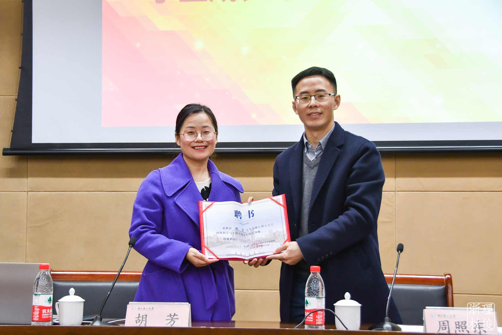 向胡芳女士颁发了学生成长导师聘书,聘请她指导指引厂长资源