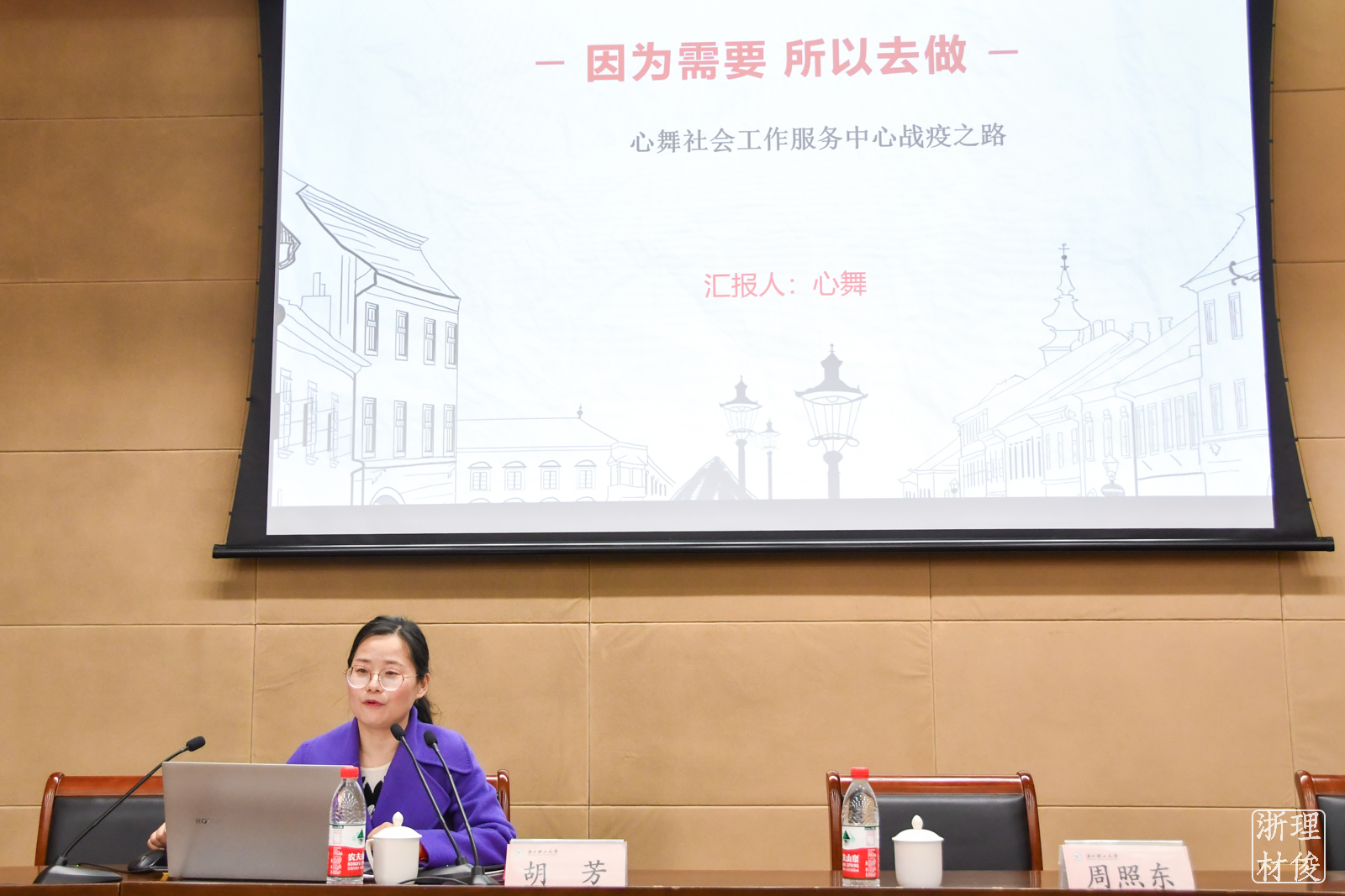 随后,胡芳女士作主题报告,她介绍了自己所创立的“心舞工作室”(现更名为“心舞社会工作服务中心”)情况,坚持十几年广泛参与种类繁多的社会公益活动,取得了广泛的社会影响力和实效。在2020年初新冠疫情爆发,武汉封城、全国共同战疫的大背景下,口罩、防护服、护目镜等防疫装备十分紧缺,得知这一消息、有一颗公益心的胡芳迅速加入了搜集防疫装备的队伍中,以在南非德班的一批口罩为例,向大家展示了从国外寻找物资的艰难,但在她及其他公益人士的努力之下,克服了种种困难,最终帮助28个基金会和8个地方政府对接了价值上亿元的急缺防疫物资,捐赠和对接了133批援鄂医疗队,发放价值600多万元的物资。