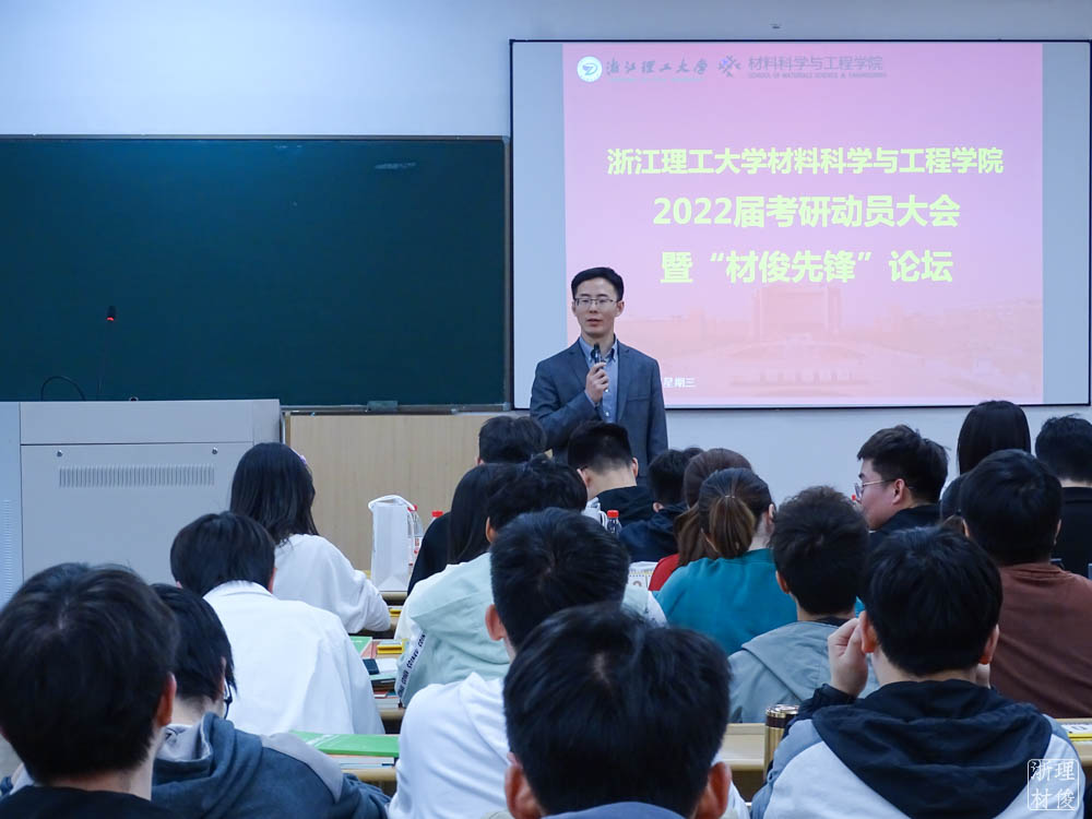 于4月7日下午在2s-243召开考研动员大会暨“材俊先锋”论坛,2018级全体本科生参加动员大会。