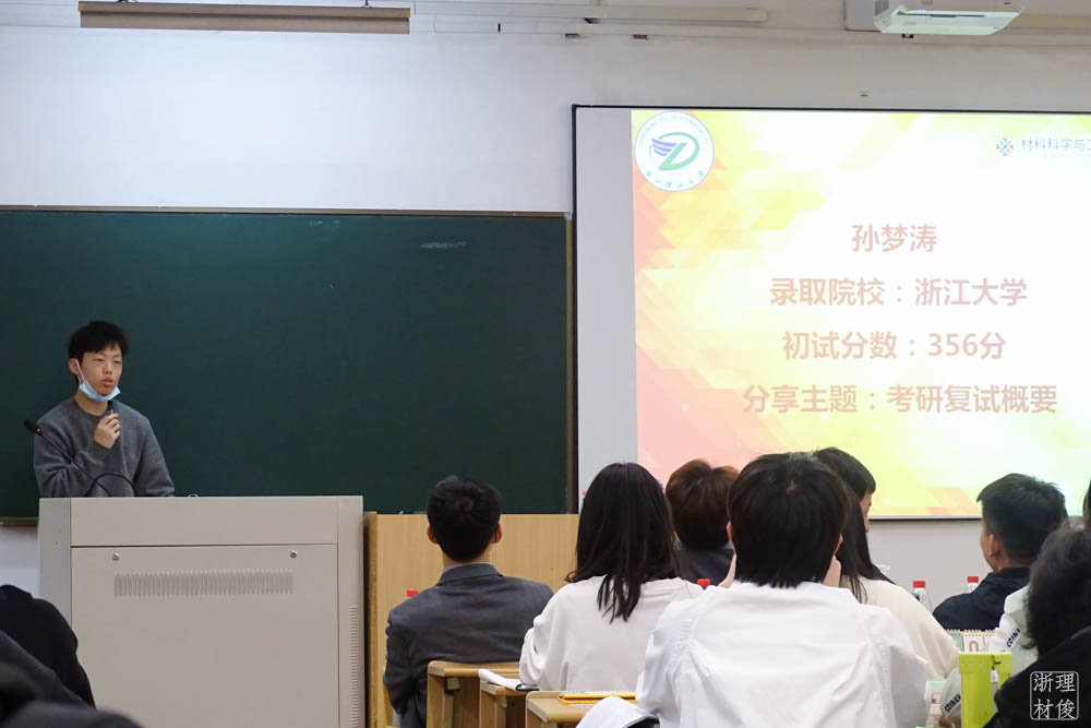 考取356分、报考浙江大学的孙梦涛向大家展示了关于考研复试的四个小块:自我介绍、英文能力测试、综合问答、小技巧,把自己复试的经验和体会毫无保留地传授给大家。