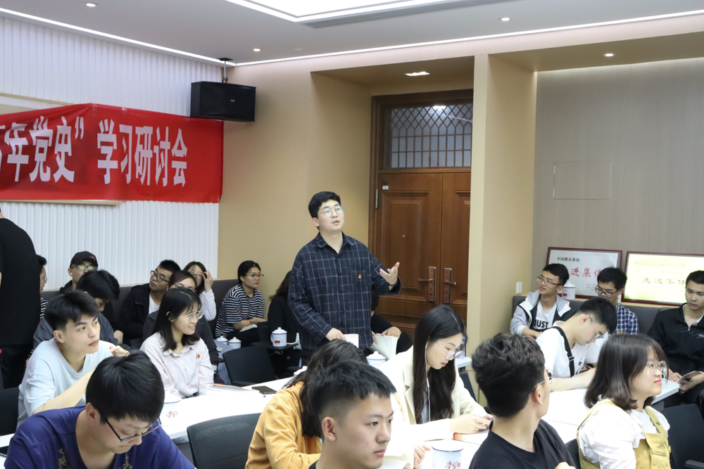 “每一次向历史回眸,都是一次精神洗礼。”会议伊始,在座党员们首先观摩学习了金子毅、温小东、欧阳兆锋三位同志的优秀宣讲视频,大家在声情并茂的视频宣讲中感受党史的历史厚重与现实启示。各位党员人手一本《中国共产党简史》进行学习与小组交流讨论。其中,就《中国共产党简史》学习和党史宣讲活动,金子毅、胡欣悦同志分享了自己的学习成果和亲身感悟。金子毅说,“党的百年历史是我国近代史发展史上浓墨重彩的一笔,是我党带领着中国人民实现从站起来、富起来到强起来的中国梦不断实现的历史过程。”同时,本次活动也拉近了他与党的百年光辉历史的距离,作为新时代大学生党员,要做好承上启下的历史任务,不断发扬和保持党的优良传统,以史为鉴,从中汲取新的生命养分。