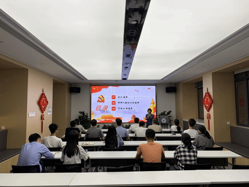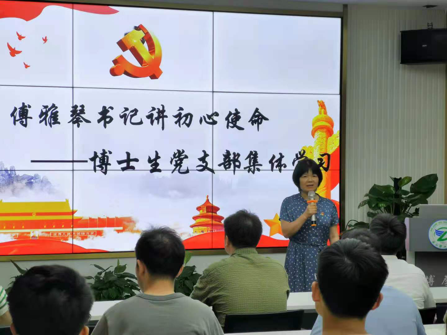 党委书记傅雅琴以“科研人的初心和使命”为主题为全体博士党员讲授党课。