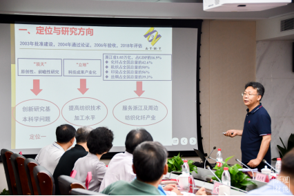 王锐教授、浙江省轻工业品质量检验研究院林磊院长、苏州大学张克勤教授、江南大学付少海教授、东华大学丁彬教授、绍兴市柯桥区科技局俞小炜局长以及校内委员陈文兴院士、郭玉海研究员、张先明教授、于斌教授、戚栋明教授等出席了会议。