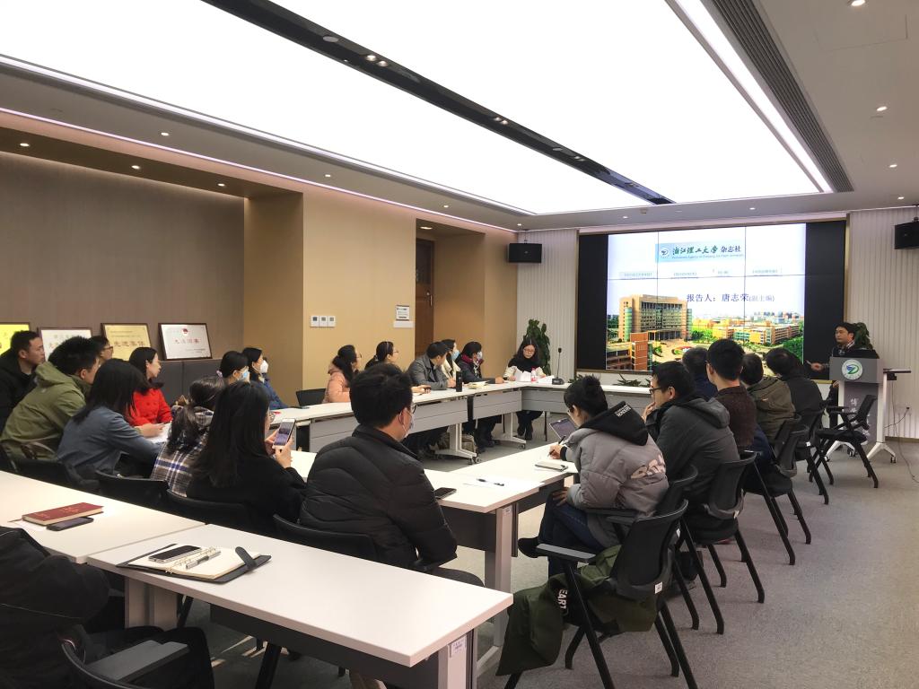 学报》副主编唐志荣老师和社科版编辑陈丽琼老师来院交流,杨叶锋副院长参加座谈会,会议由系主任金达莱老师主持,约50名教师参加座谈会。