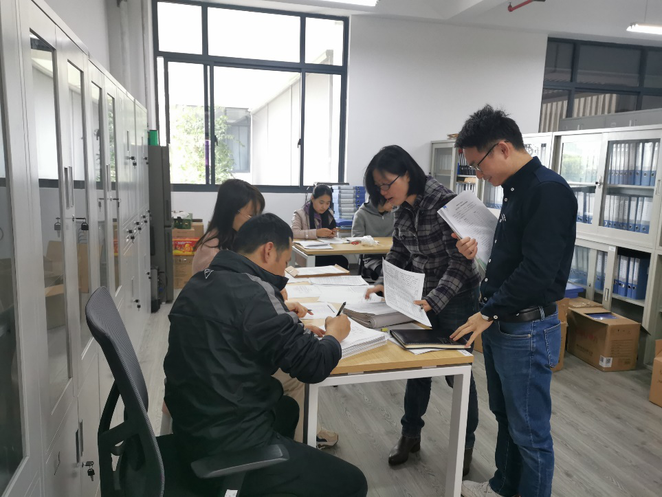4月14日当天,杨玉慧、竺哲欣、陈锋涛、包建娜、林文鑫、钱晨六位老师在现场收集各门课程的考核资料。六位老师逐一检查各位老师的教学任务书、教学大纲、最终考核成绩来源说明、平时成绩、作业本、课程考核合理性确认表、课程教学目标达成情况评价表、课程考核结果分析等材料,并将其分批分册整理归档。活动持续了一下午,收集现场井然有序,大家认真负责地完成了本次工程认证归档材料的收集工作。